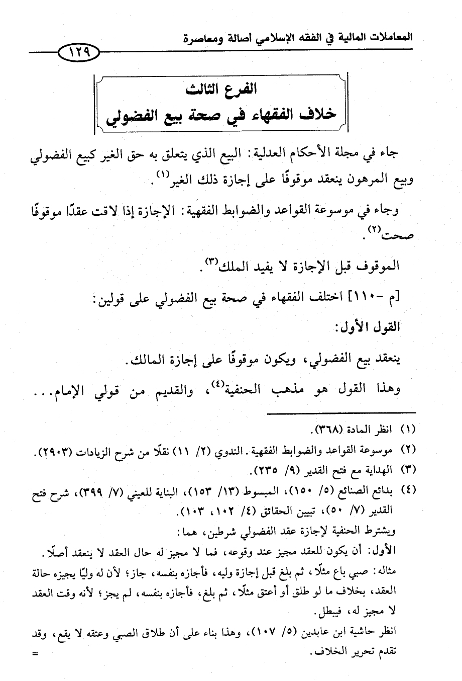 الفرع الثالث خلاف الفقهاء في صحة بيع الفضولي