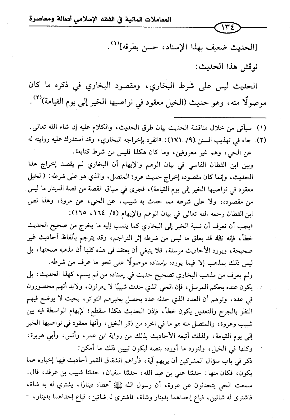 ولم يعرف من مذهب البخاري تصحيح حديث في إسناده من لم يسم، كهذا الحديث، بل يكون عنده بحكم المرسل، فإن الحي الذي حدث شبيبًا لا يعرفون، ولا بد أنهم محصورون في عدد، وتوهم أن العدد الذي حدثه عدد يحصل بخبرهم التواتر، بحيث لا يوضع فيهم النظر بالجرح والتعديل يكون خطأ، فإذن الحديث هكذا منقطع؛ لإبهام الواسطة فيه بين شبيب وعروة، والمتصل منه هو ما في آخره من ذكر الخيل، وأنها معقود في نواصيها الخير إلى يوم القيامة، ولذلك أتبعه الأحاديث بذلك من رواية ابن عمر، وأنس، وأبي هريرة، وكلها في الخيل، ولنورد ما أورده بنصه ليكون تبيين ذلك ما أمكن: