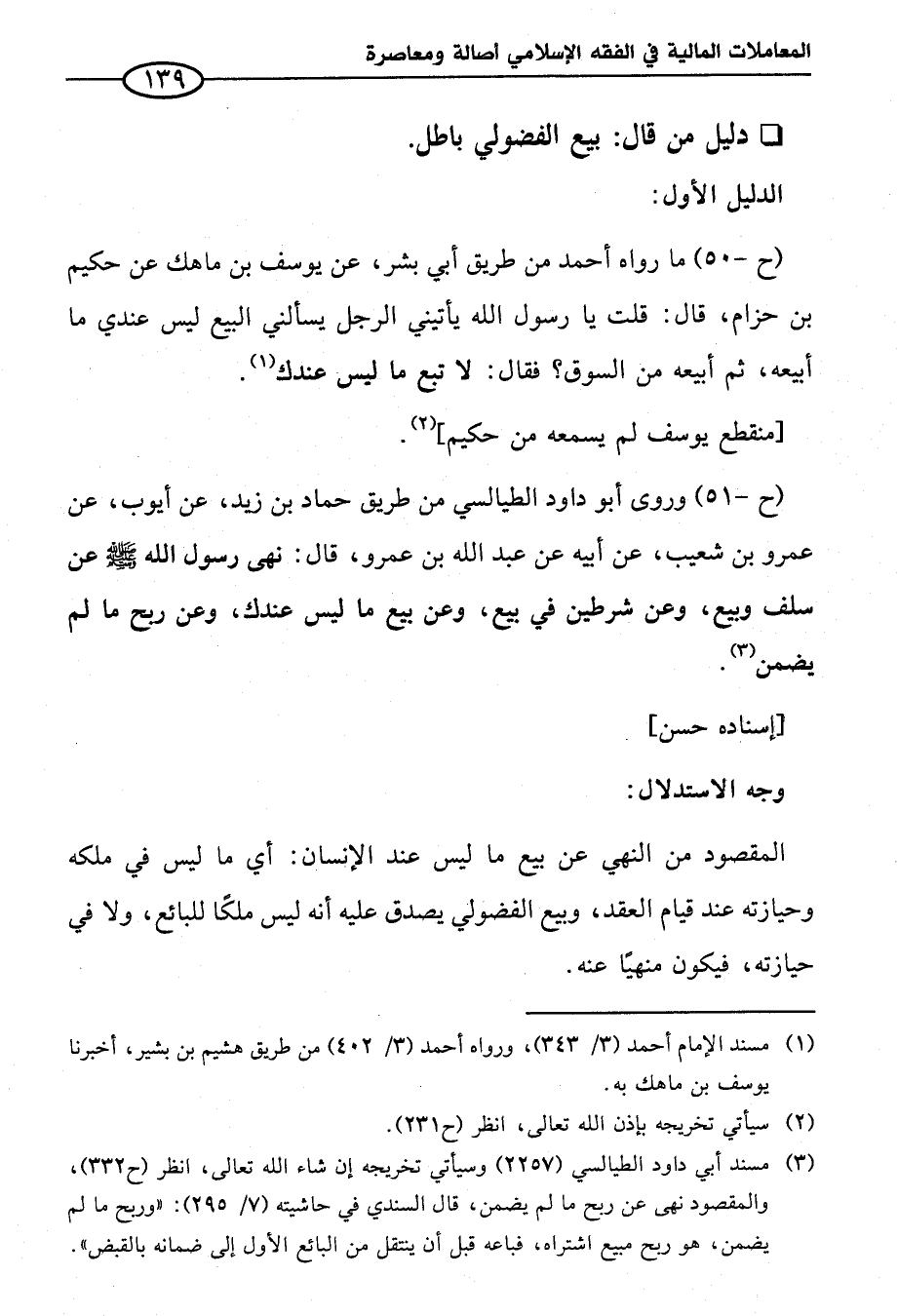 (¬٣) مسند أبي داود الطيالسي (٢٢٥٧) وسيأتي تخريجه إن شاء الله تعالى، انظر (ح ٣٣٢)، والمقصود نهى عن ربح ما لم يضمن، قال السندي في حاشيته (٧/ ٢٩٥): "وربح ما لم يضمن، هو ربح مبيع اشتراه، فباعه قبل أن ينتقل من البائع الأول إلى ضمانه بالقبض".
