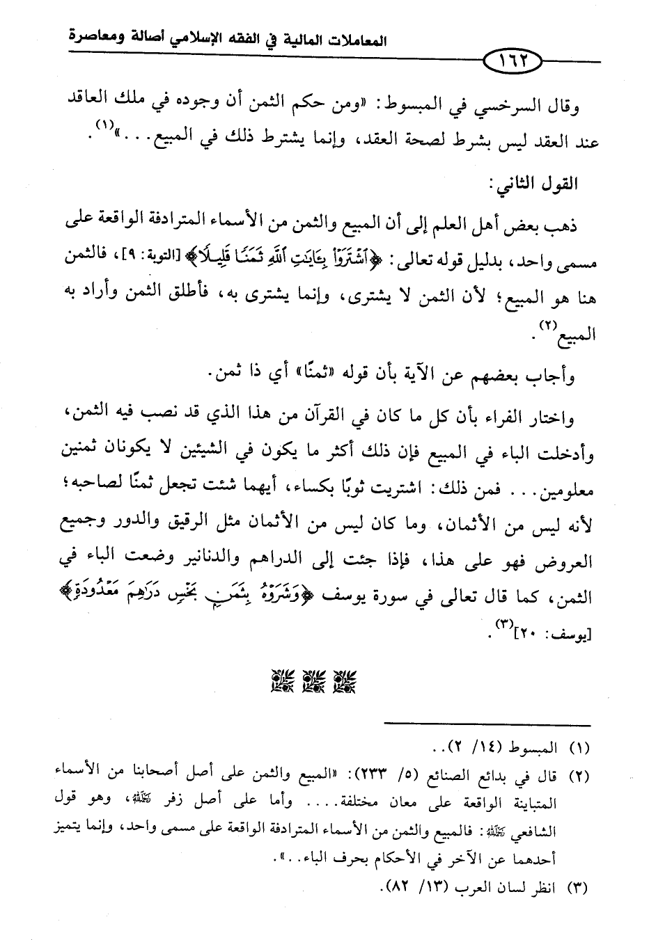 (¬٢) قال في بدائع الصنائع (٥/ ٢٣٣): "المبيع والثمن على أصل أصحابنا من الأسماء المتباينة الواقعة على معان مختلفة .... وأما على أصل زفر - رحمه الله -، وهو قول الشافعي - رحمه الله -: فالمبيع والثمن من الأسماء المترادفة الواقعة على مسمى واحد، وإنما يتميز أحدهما عن الآخر في الأحكام بحرف الباء .. ".