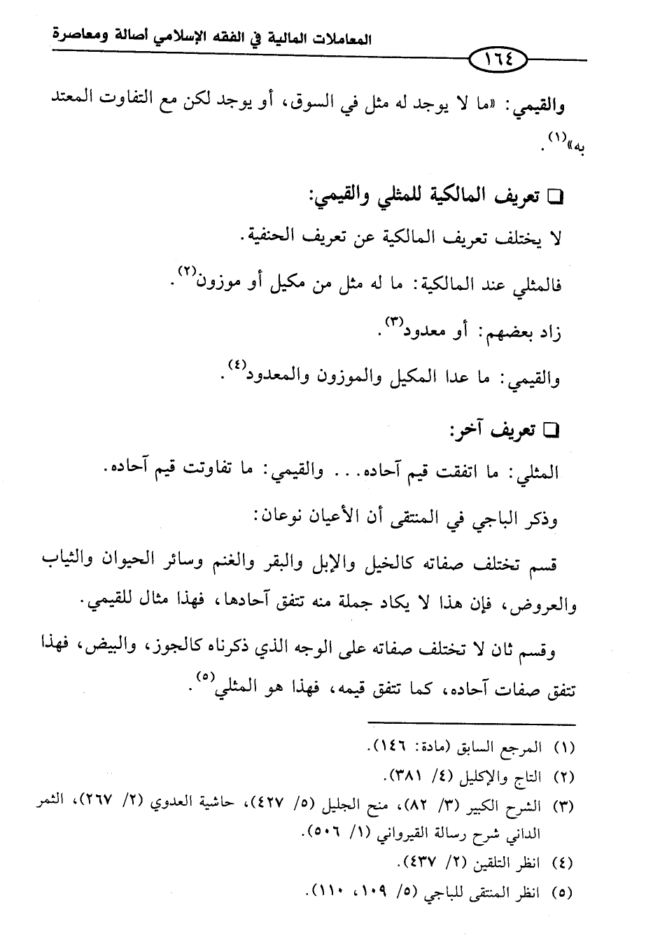 تعريف المالكية للمثلي والقيمي: