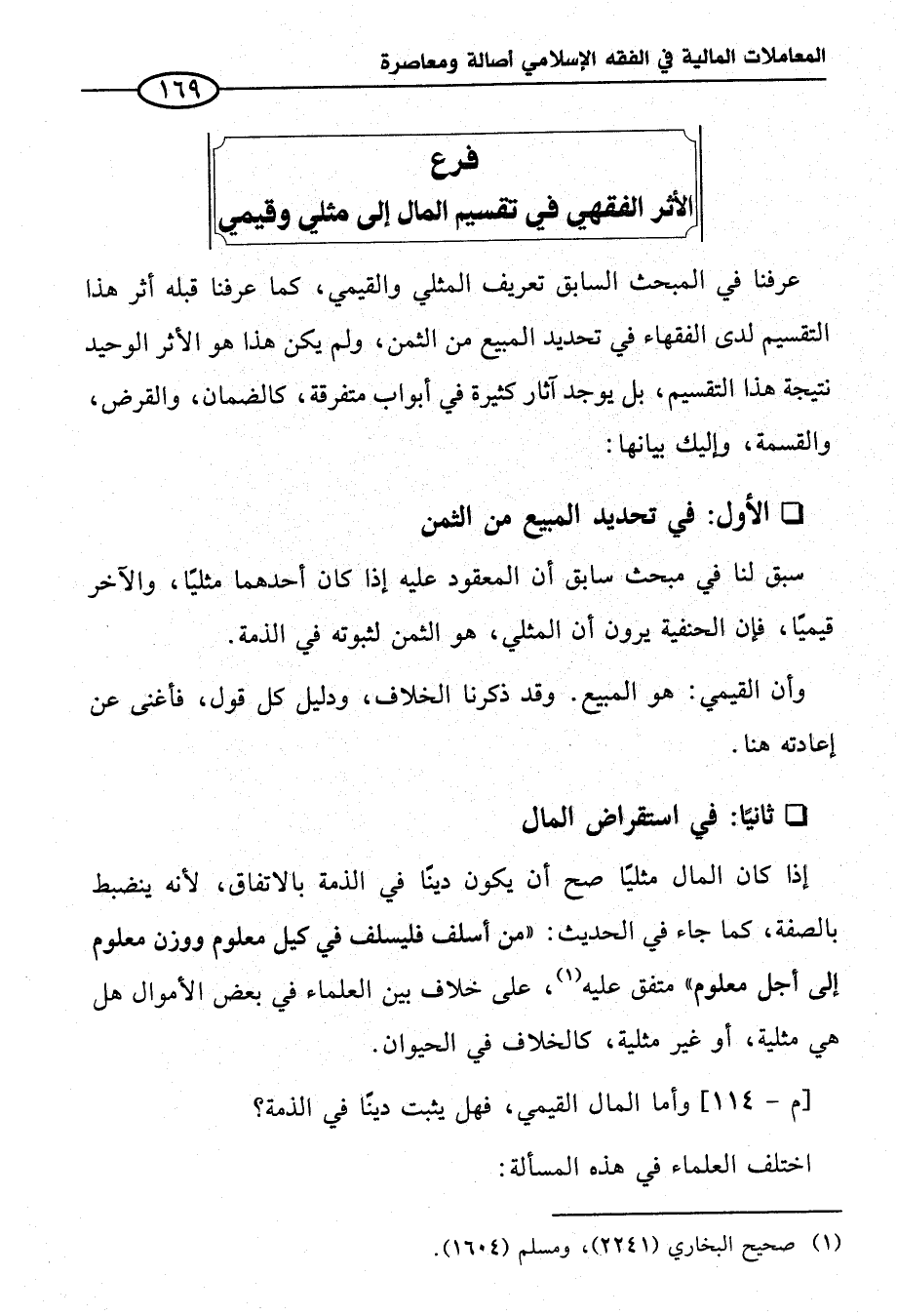 فرع الأثر الفقهي في تقسيم المال إلى مثلي وقيمي