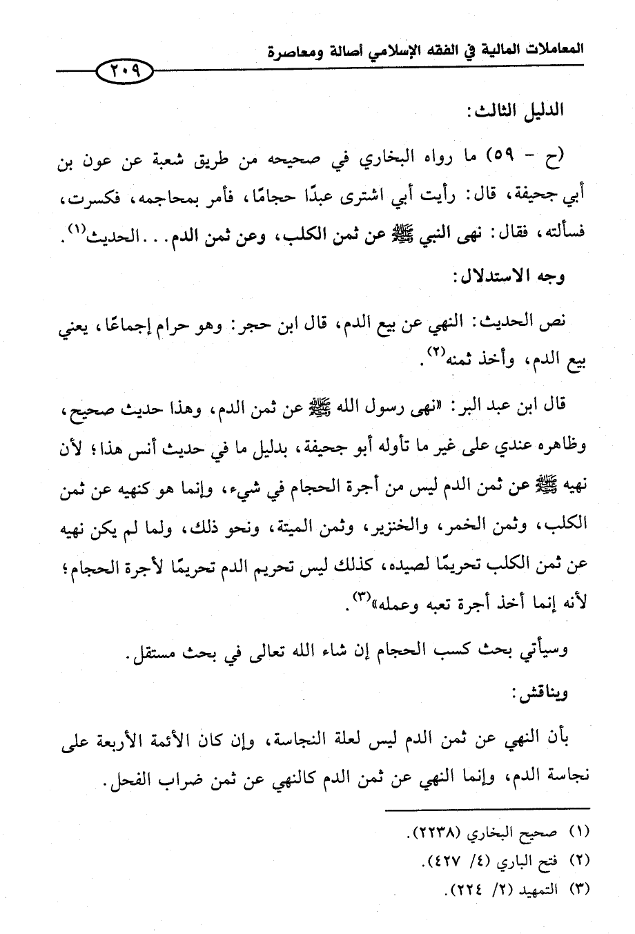 قال ابن عبد البر: "نهى رسول الله - صلى الله عليه وسلم - عن ثمن الدم، وهذا حديث صحيح، وظاهره عندي على غير ما تأوله أبو جحيفة، بدليل ما في حديث أنس هذا؛ لأن نهيه - صلى الله عليه وسلم - عن ثمن الدم ليس من أجرة الحجام في شيء، وإنما هو كنهيه عن ثمن الكلب، وثمن الخمر، والخنزير، وثمن الميتة، ونحو ذلك، ولما لم يكن نهيه عن ثمن الكلب تحريمًا لصيده، كذلك ليس تحريم الدم تحريمًا لأجرة الحجام؛ لأنه إنما أخذ أجرة تعبه وعمله" (¬٣).