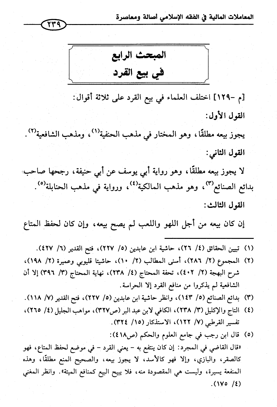 المبحث الرابع في بيع القرد