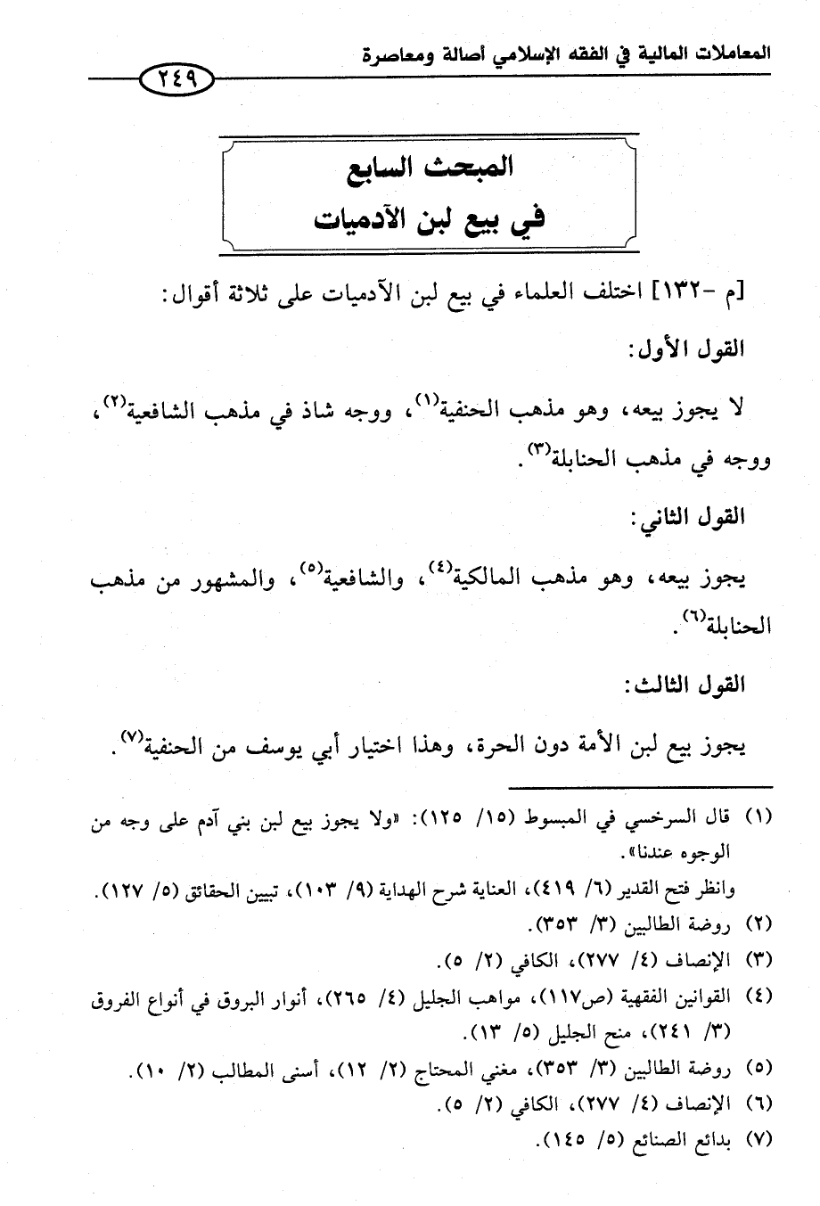 المبحث السابع في بيع لبن الآدميات
