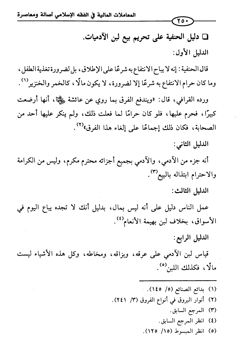 قياس لبن الآدمي على عرقه، وبزاقه، ومخاطه، وكل هذه الأشياء ليست مالًا، فكذلك اللبن (¬٥).