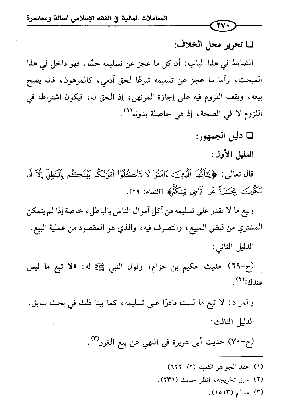 (ح - ٧٠) حديث أبي هريرة في النهي عن بيع الغرر (¬٣).