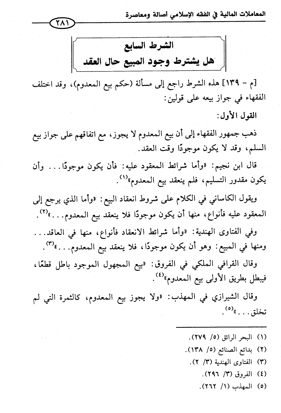 الشرط السابع هل يشترط وجود المبيع حال العقد