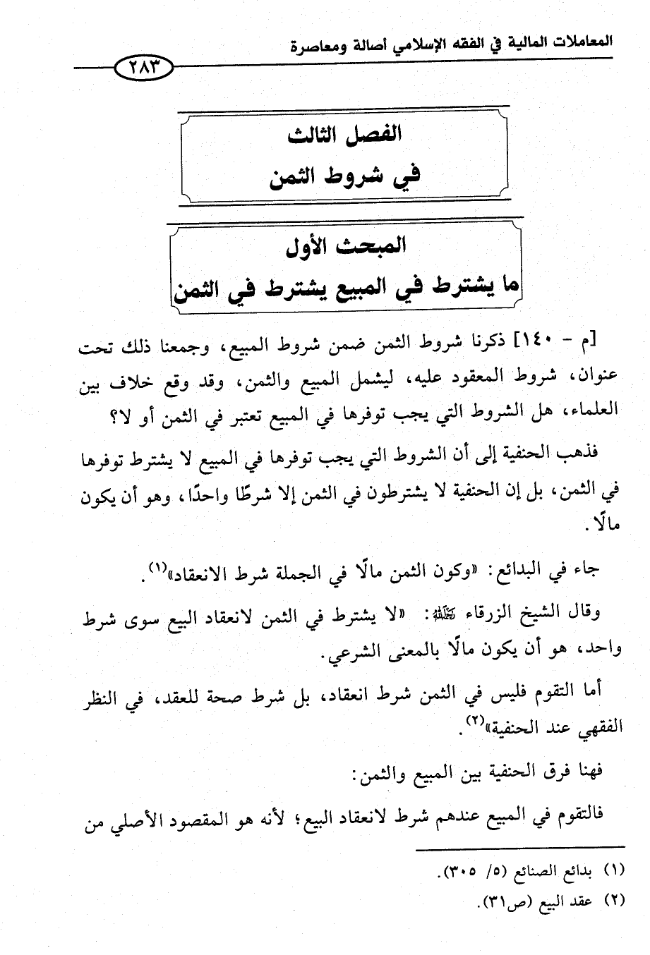 الفصل الثالث في شروط الثمن