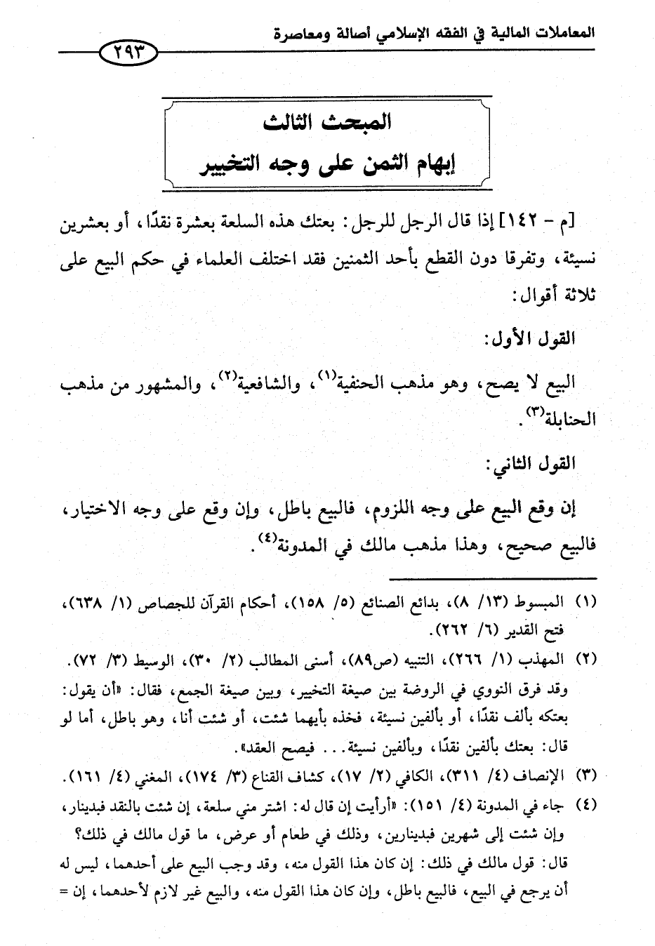 المبحث الثالث إبهام الثمن على وجه التخيير