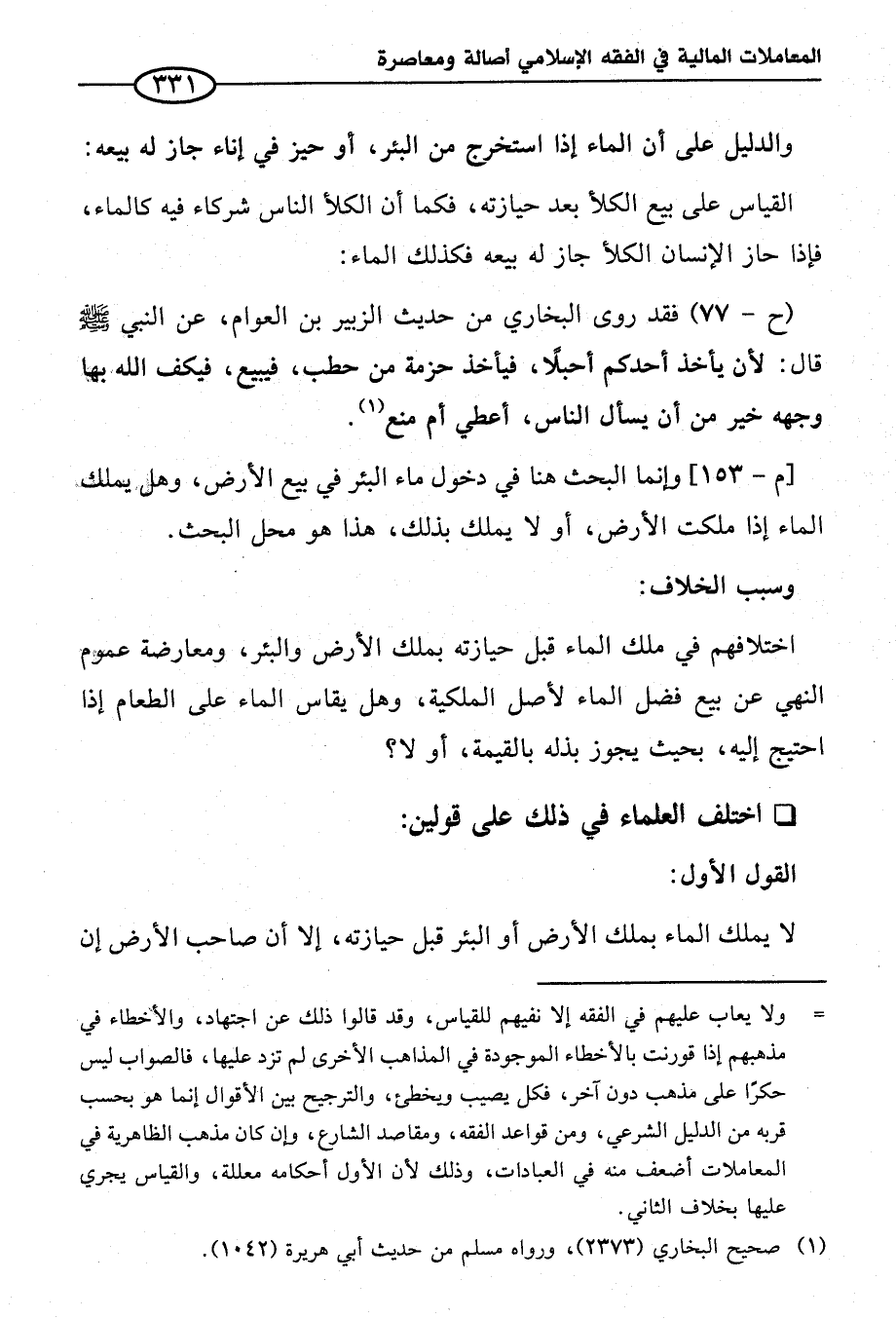 [م - ١٥٣] وإنما البحث هنا في دخول ماء البئر في بيع الأرض، وهل يملك الماء إذا ملكت الأرض، أو لا يملك بذلك، هذا هو محل البحث.