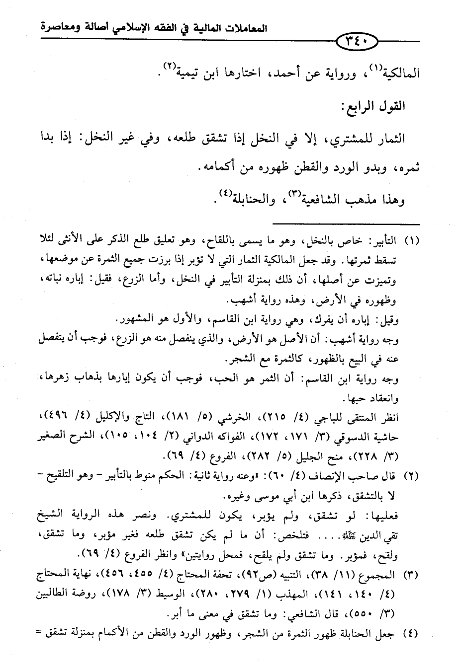 (¬٢) قال صاحب الإنصاف (٤/ ٦٠): "وعنه رواية ثانية: الحكم منوط بالتأبير - وهو التلقيح - لا بالتشقق، ذكرها ابن أبي موسى وغيره.