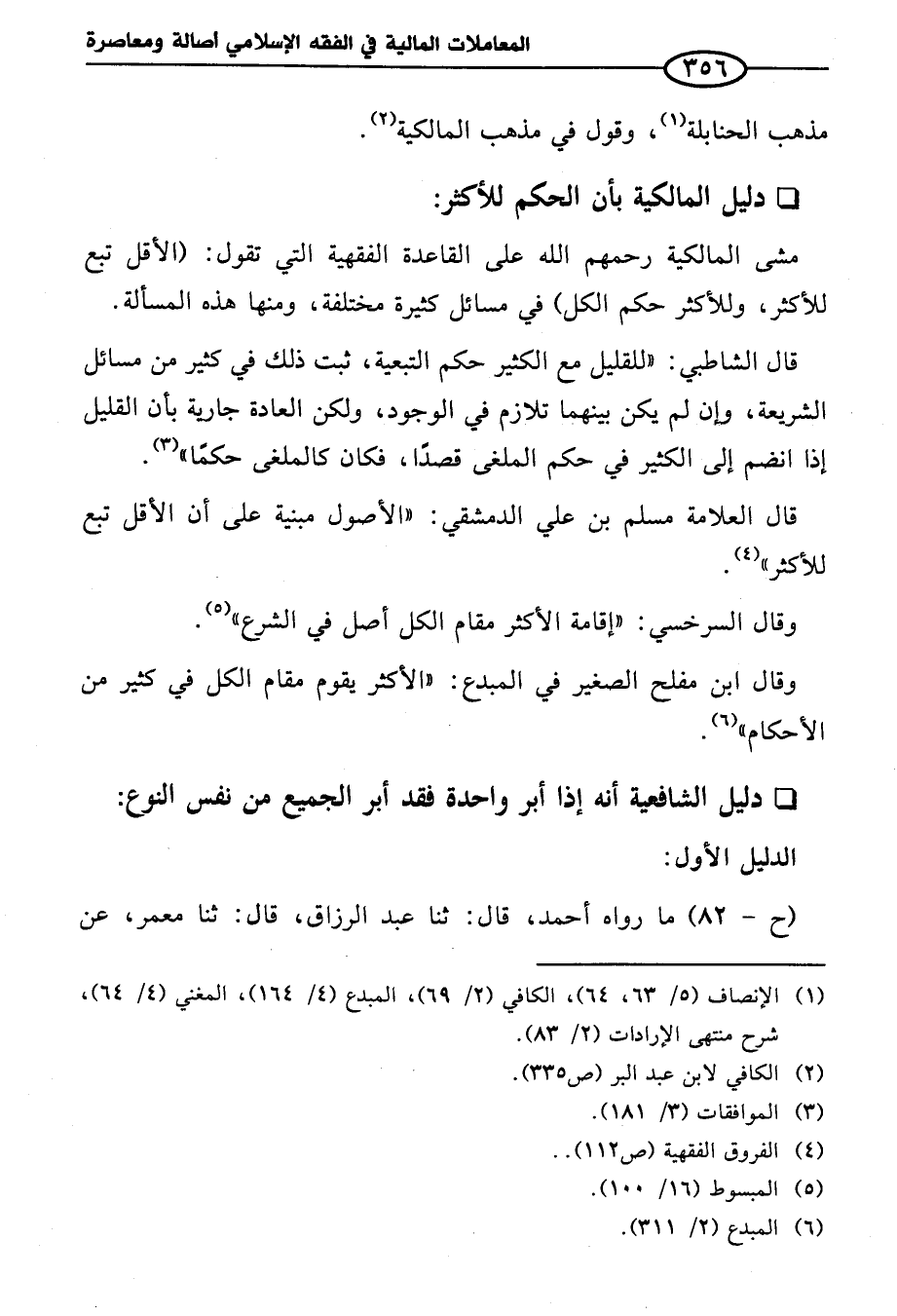وقال ابن مفلح الصغير في المبدع: "الأكثر يقوم مقام الكل في كثير من الأحكام" (¬٦).