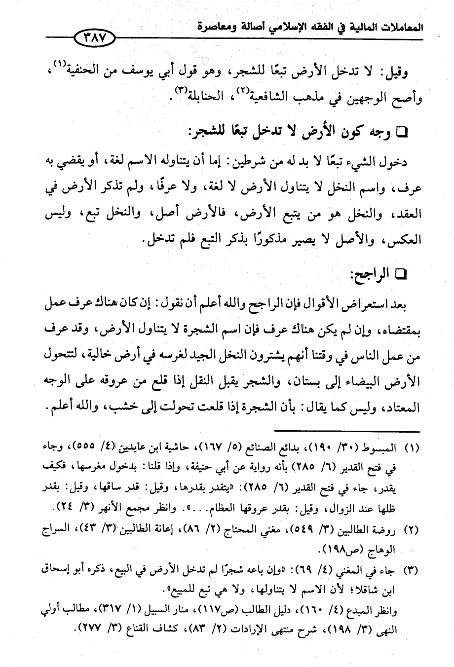 (¬٣) جاء في المغني (٤/ ٦٩): "وإن باعه شجرًا لم تدخل الأرض في البيع، ذكره أبو إسحاق ابن شاقلا؛ لأن الاسم لا يتناولها، ولا هي تبع للمبيع".