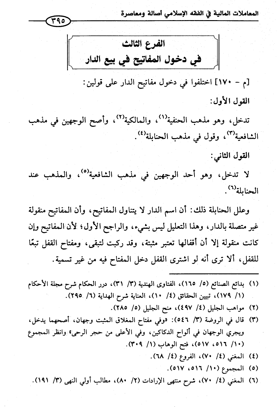الفرع الثالث في دخول المفاتيح في بيع الدار