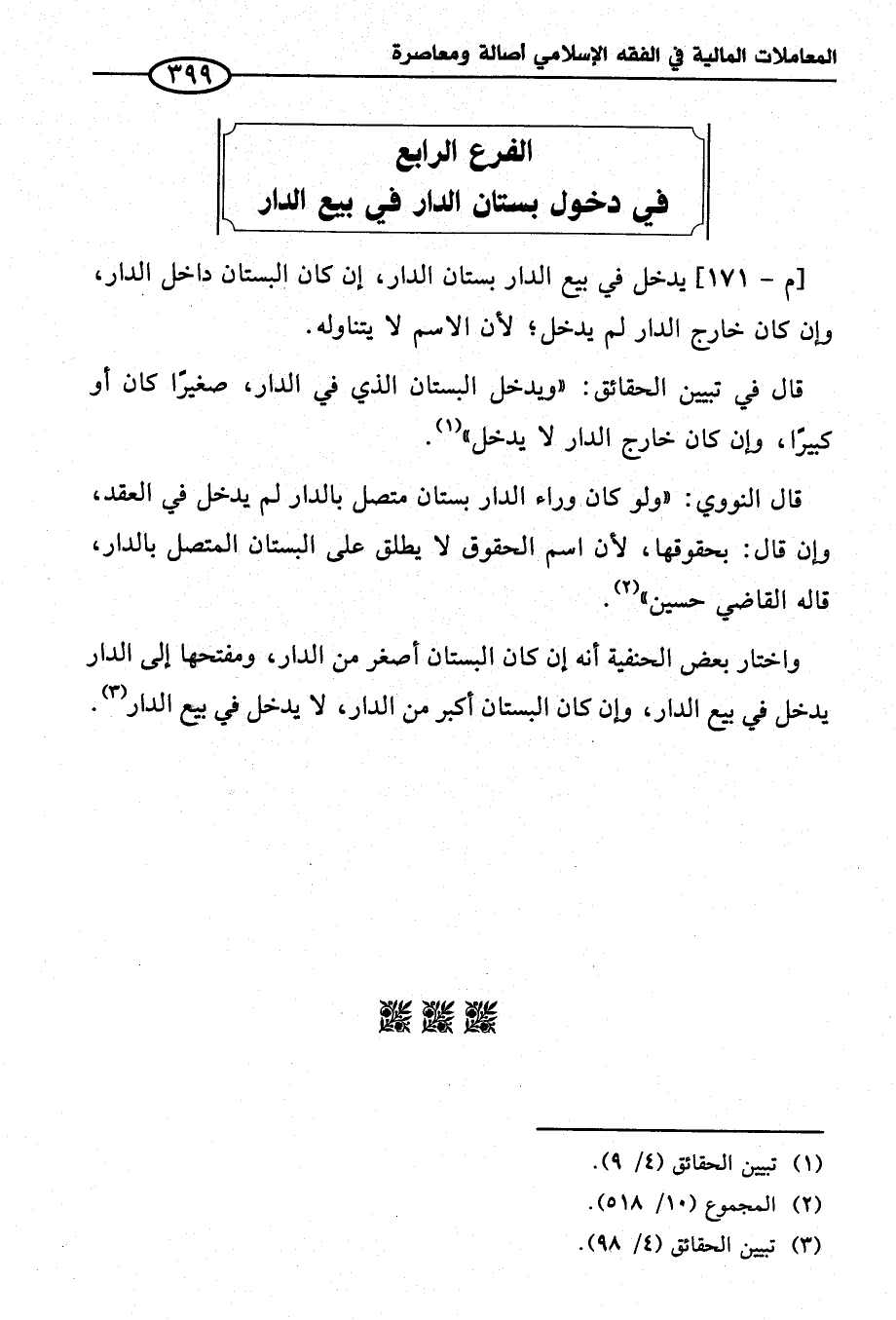الفرع الرابع في دخول بستان الدار في بيع الدار