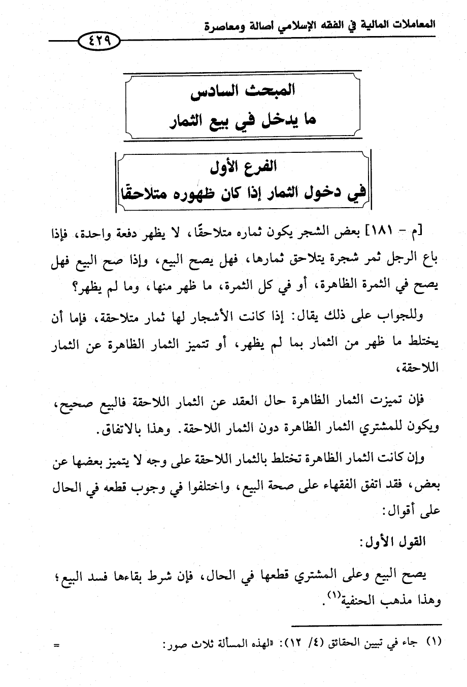 وللجواب على ذلك يقال: إذا كانت الأشجار لها ثمار متلاحقة، فإما أن يختلط ما ظهر من الثمار بما لم يظهر، أو تتميز الثمار الظاهرة عن الثمار اللاحقة،