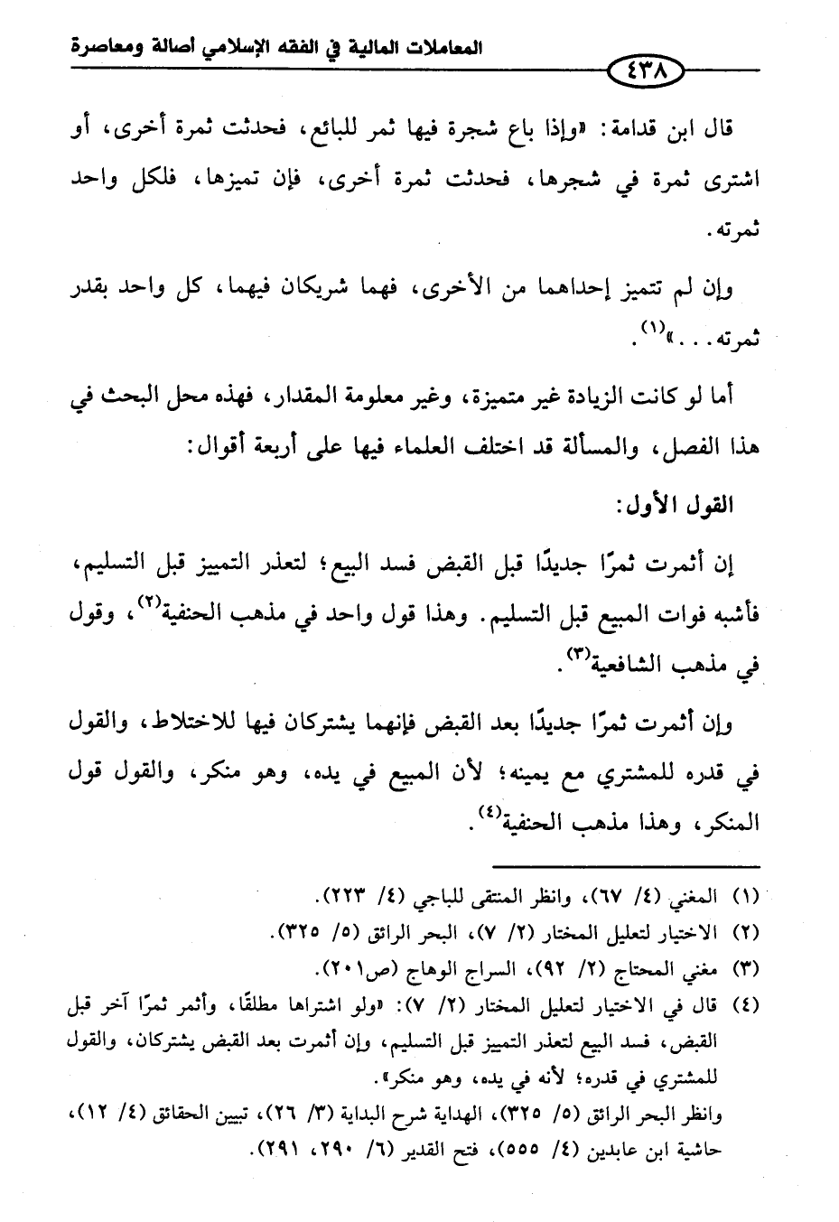 (¬٤) قال في الاختيار لتعليل المختار (٢/ ٧): "ولو اشتراها مطلقاً، وأثمر ثمرًا آخر قبل القبض، فسد البيع لتعذر التمييز قبل التسليم، وإن أثمرت بعد القبض يشتركان، والقول للمشتري في قدره؛ لأنه في يده، وهو منكر".