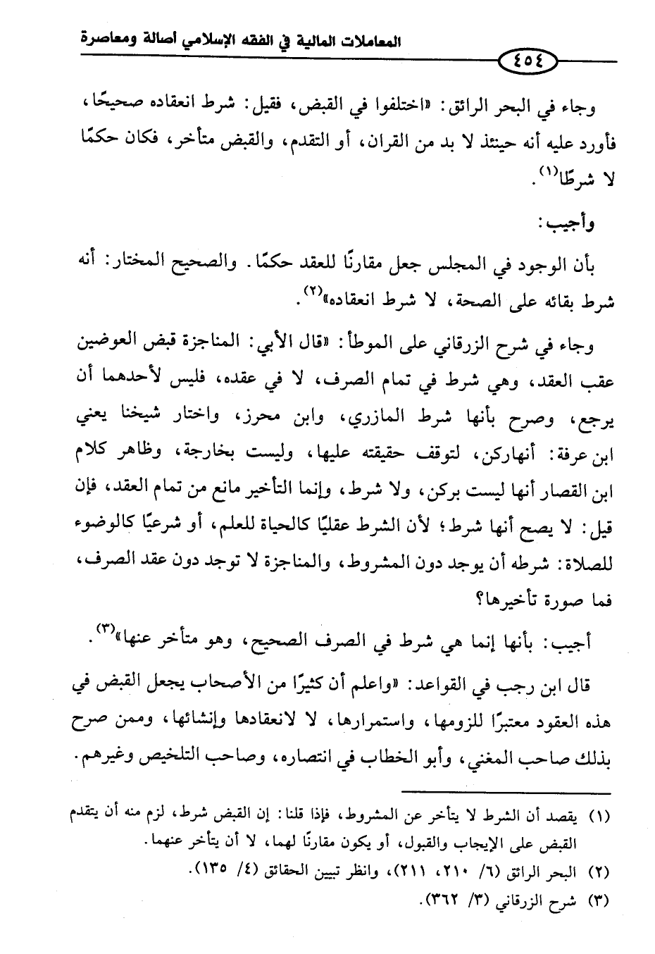 وجاء في البحر الرائق: "اختلفوا في القبض، فقيل: شرط انعقاده صحيحًا، فأورد عليه أنه حينئذ لا بد من القرآن، أو المتقدم، والقبض متأخر، فكان حكمًا لا شرطًا (¬١).