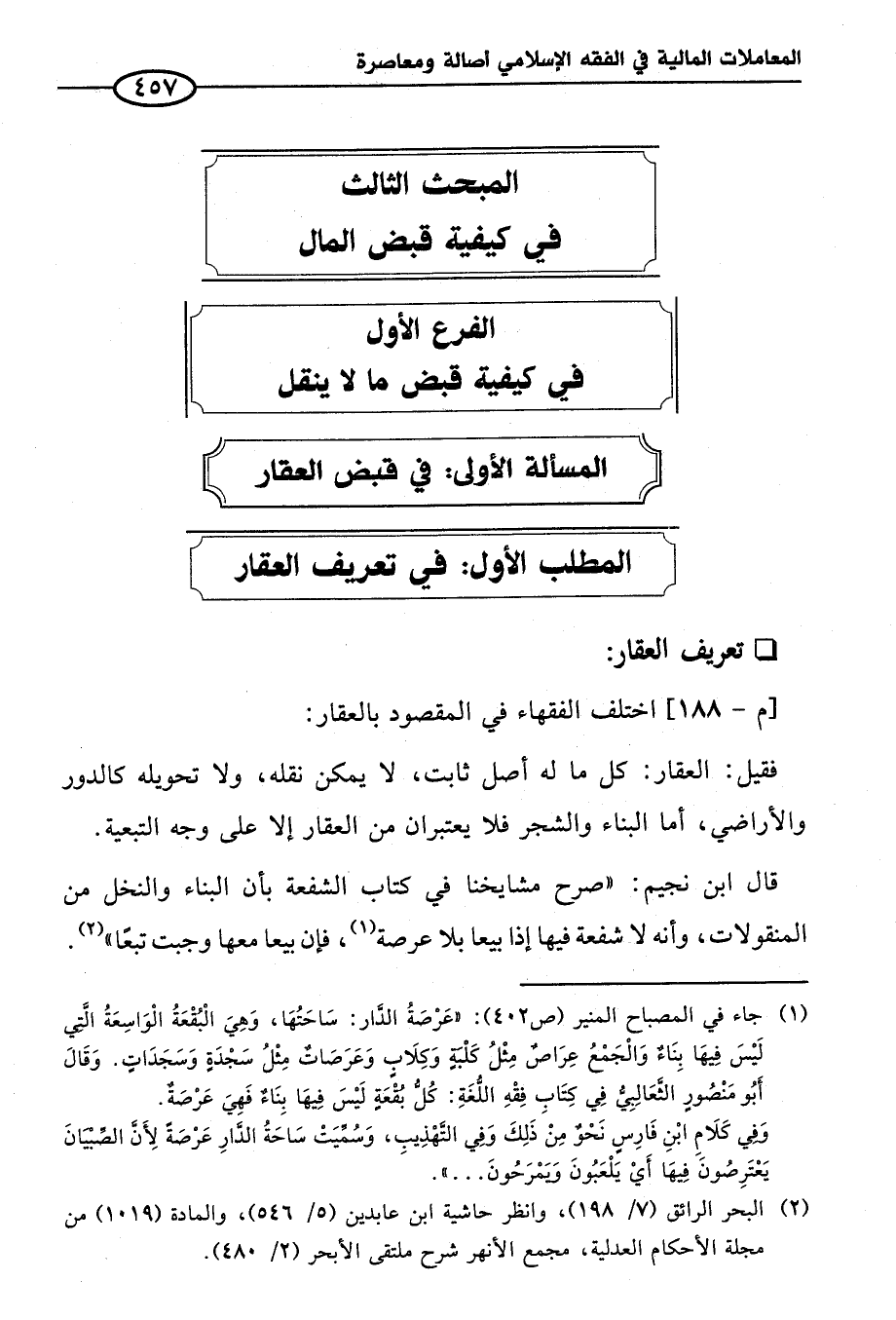 [م - ١٨٨] اختلف الفقهاء في المقصود بالعقار: