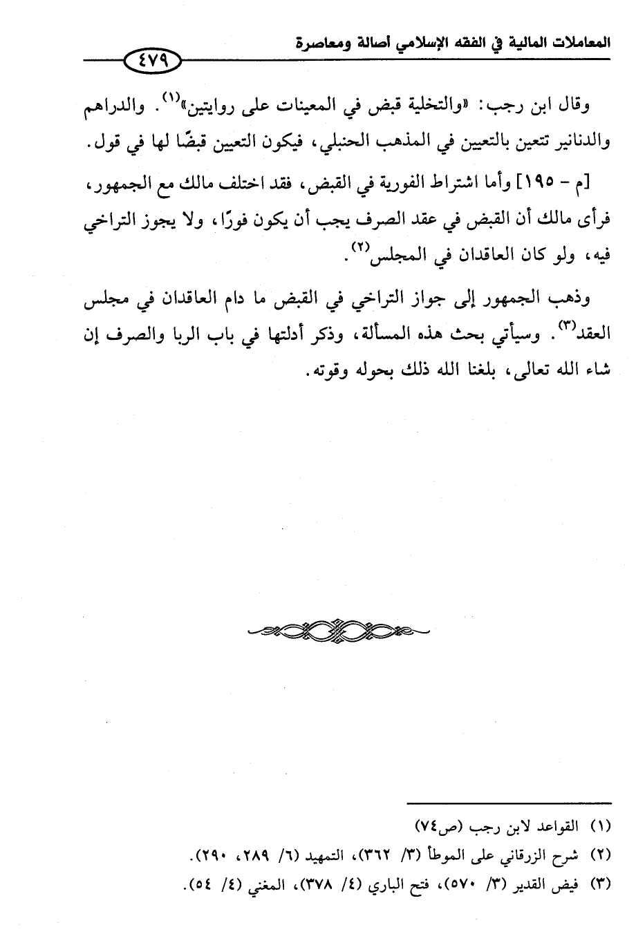 وذهب الجمهور إلى جواز التراخي في القبض ما دام العاقدان في مجلس العقد (¬٣). وسيأتي بحث هذه المسألة، وذكر أدلتها في باب الربا والصرف إن شاء الله تعالى، بلغنا الله ذلك بحوله وقوته.