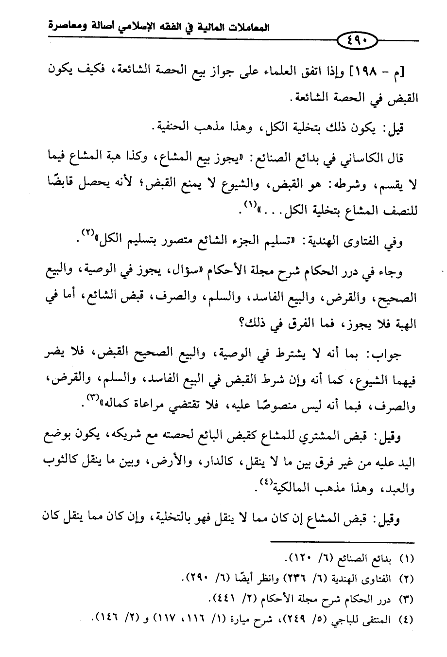 [م - ١٩٨]، وإذا اتفق العلماء على جواز بيع الحصة الشائعة، فكيف يكون القبض في الحصة الشائعة.
