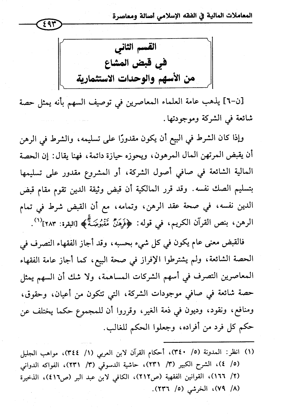 القسم الثاني في قبض المشاع من الأسهم والوحدات الاستثمارية