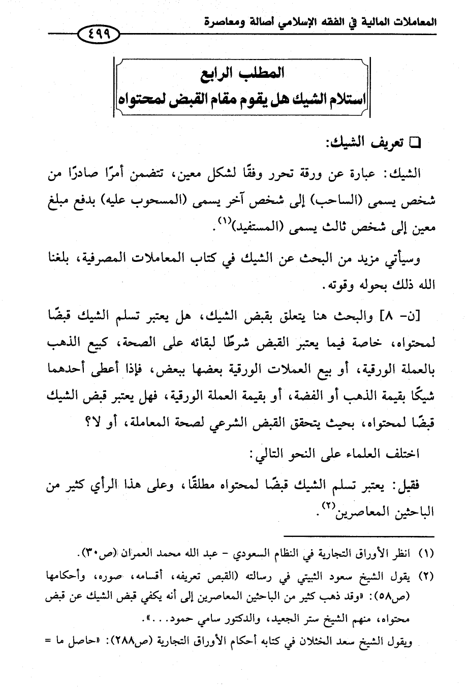 وسيأتي مزيد عن البحث عن الشيك في كتاب المعاملات المصرفية، بلغنا الله ذلك بحوله وقوته.