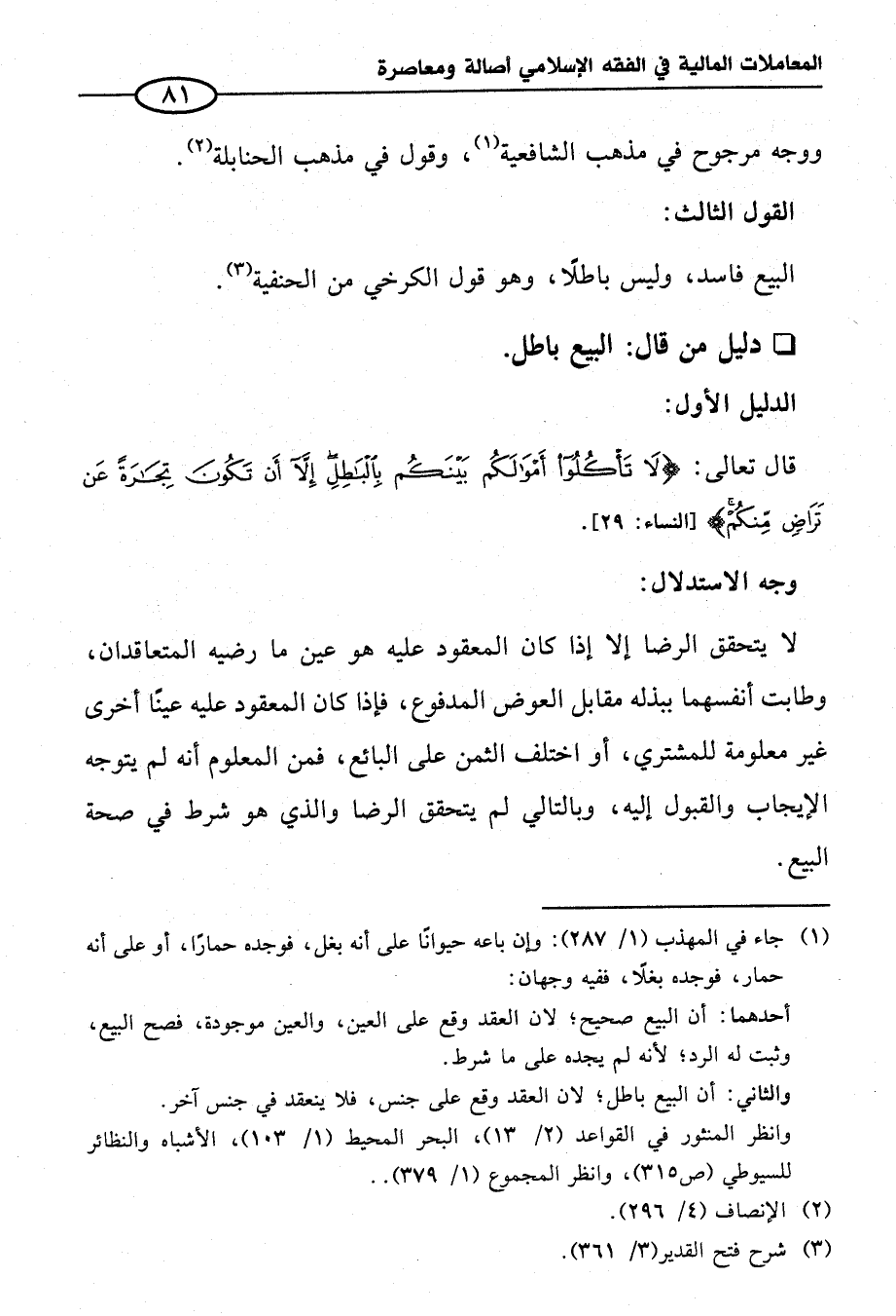 قال تعالى: {لَا تَأْكُلُوا أَمْوَالَكُمْ بَيْنَكُمْ بِالْبَاطِلِ إِلَّا أَنْ تَكُونَ تِجَارَةً عَنْ تَرَاضٍ مِنْكُمْ} [النساء: ٢٩].