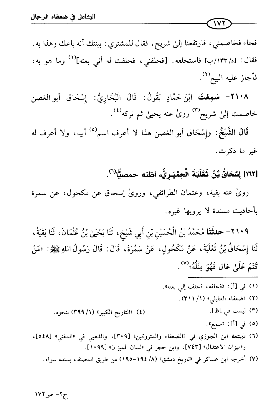 [162] إسحاق بن ثعلبة الحميري، أظنه حِمصِيًا.