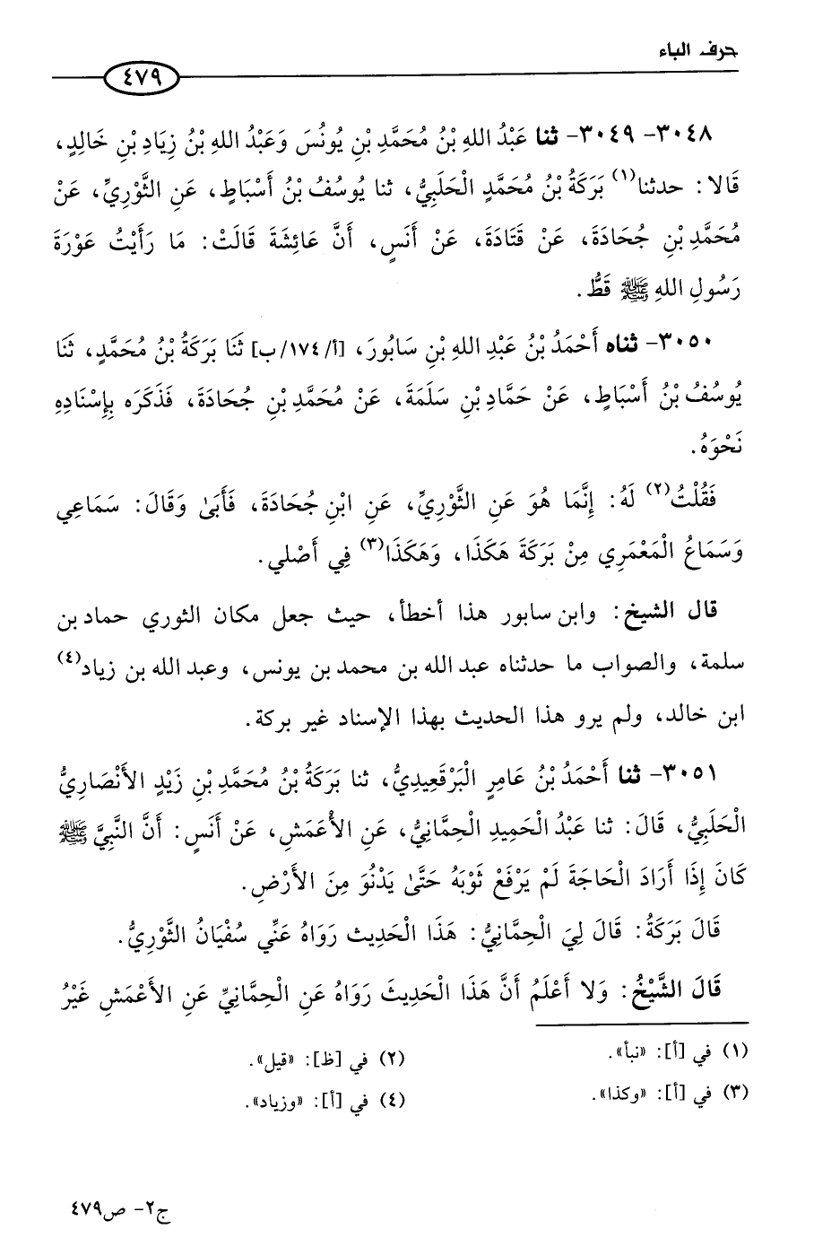 3050 - حَدثناهُ أحمد بن عَبد الله بن سابور، حَدثنا بركة بن مُحمد، حَدثنا يوسف بن أسباط، عن حماد بن سلمة، عن مُحمد بن جحادة، فذكره بإسناده، نحوه.