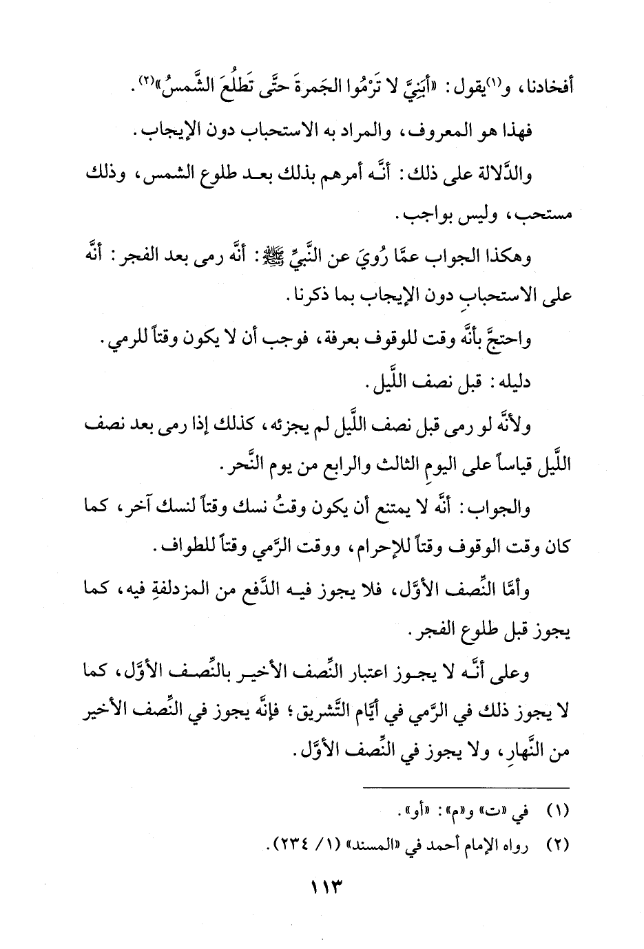 وعلى أنه لا يجوز اعتبار النصف الأخير بالنصف الأول، كما لا يجوز ذلك في الرمي في أيام التشريق؛ فإنه يجوز في النصف الأخير من النهار، ولا يجوز في النصف الأول.