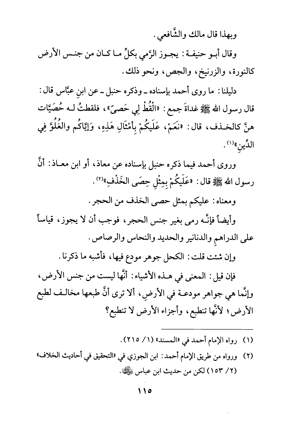 دليلنا: ما روى أحمد بإسناده -وذكره حنبل- عن ابن عباس قال: قال رسول الله صلى الله عليه وسلّم غداة جمع: "القط لي حصى"، فلقطت له حُصيات هن كالخذف، قال: "نعم، عليكم بأمثال هذه، وإياكم والغلو في الدين".
