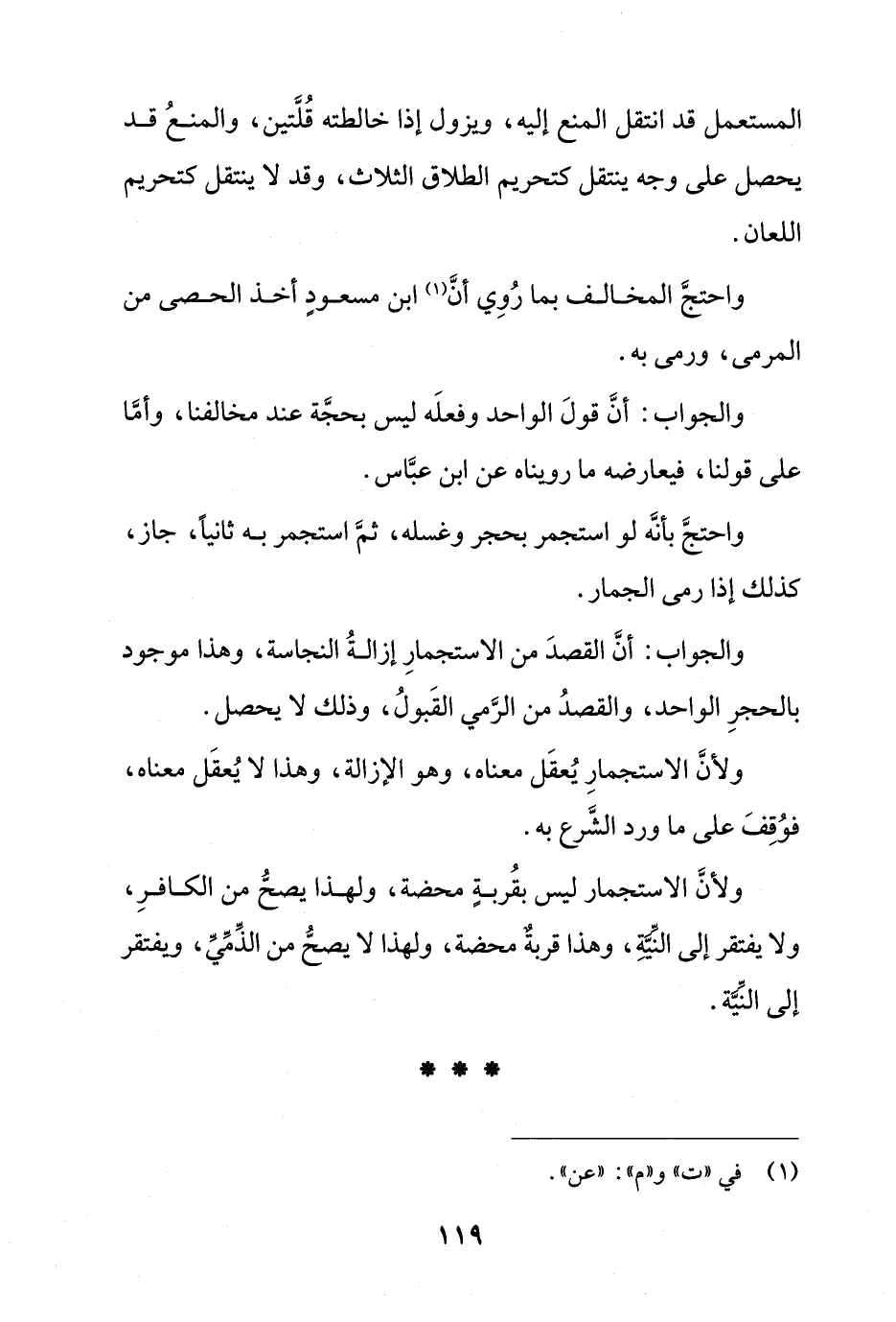 واحتج بأنه لو استجمر بحجر وغسله، ثم استجمر به ثانياً، جاز، كذلك إذا رمى الجمار.