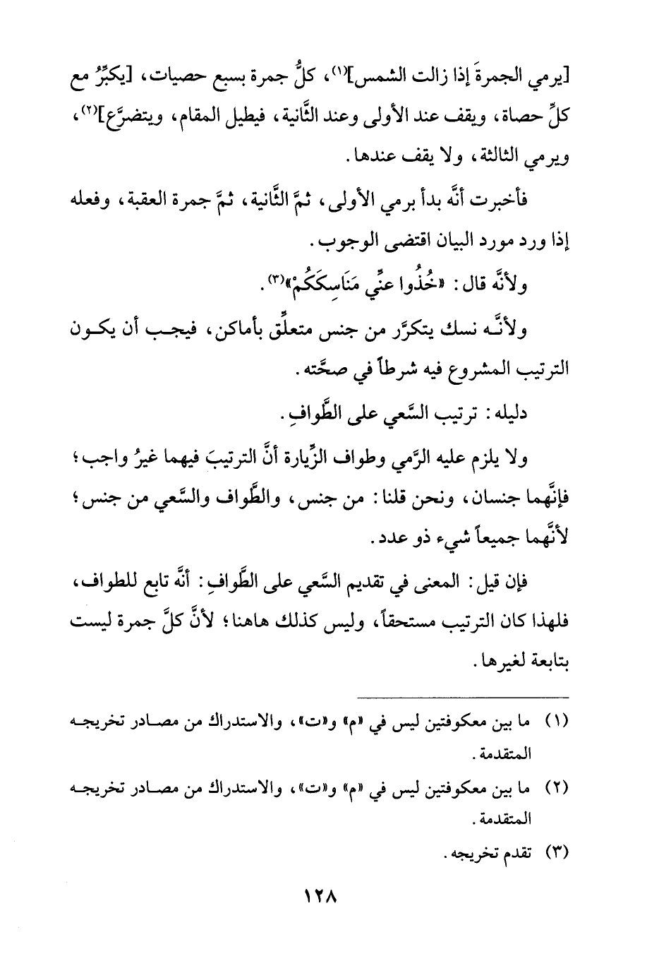 ولأنه نسك يتكرر من جنس متعلق بأماكن، فيجب أن يكون الترتيب المشروع فيه شرطاً في صحته.