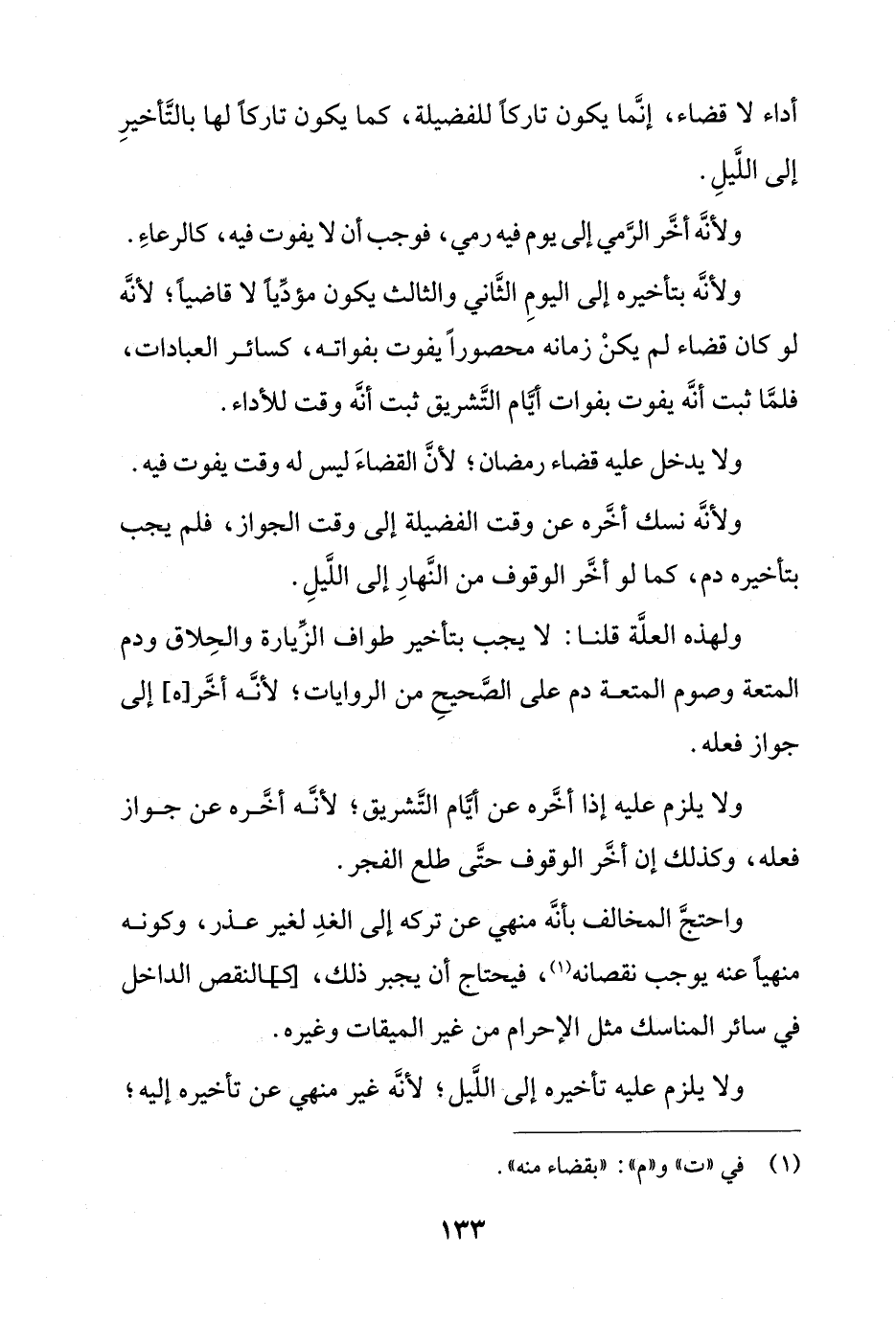 ولا يلزم عليه إذا أخره عن أيام التشريق؛ لأنه أخره عن جواز فعله، وكذلك إن أخر الوقوف حتى طلع الفجر.