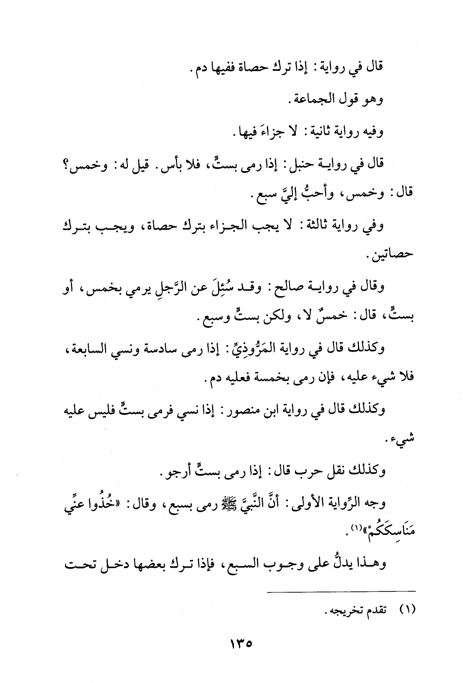 وقال في رواية صالح: وقد سئل عن الرجل يرمي بخمس، أو بست، قال: خمس لا، ولكن بست وسبع.