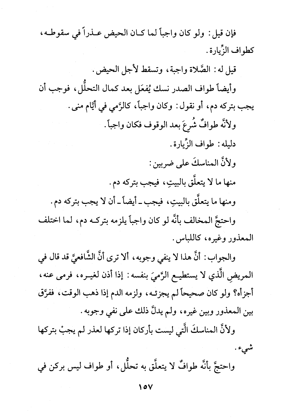 واحتج المخالف بأنه لو كان واجباً يلزمه بتركه دم، لما اختلف المعذور وغيره، كاللباس.