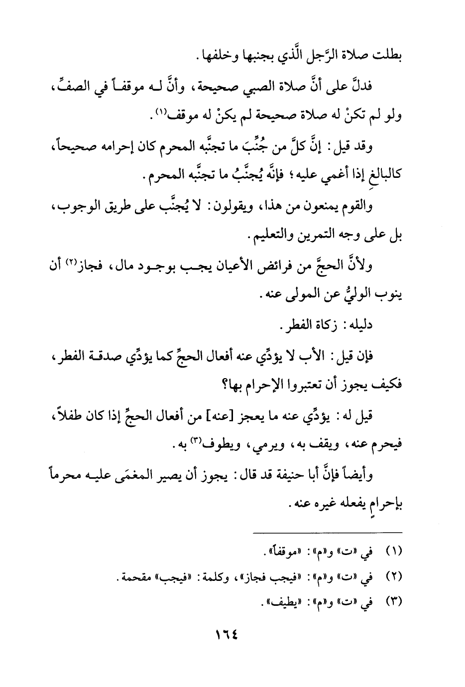 وقد قيل: إن كل من جُنب ما تجنبه المحرم كان إحرامه صحيحاً، كالبالغ إذا أغمي عليه؛ فإنه يُجنب ما تجنبه المحرم.