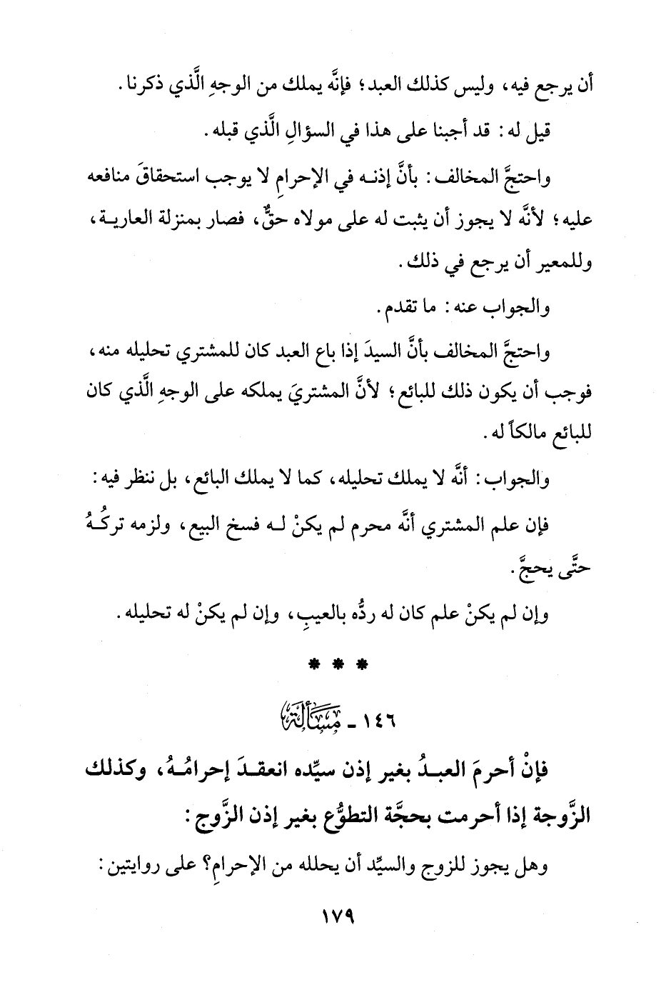 واحتج المخالف بأن السيد إذا باع العبد كان للمشترى تحليله منه، فوجب أن يكون ذلك للبائع؛ لأن المشتري يملكه على الوجه الذي كان للبائع مالكاً له.