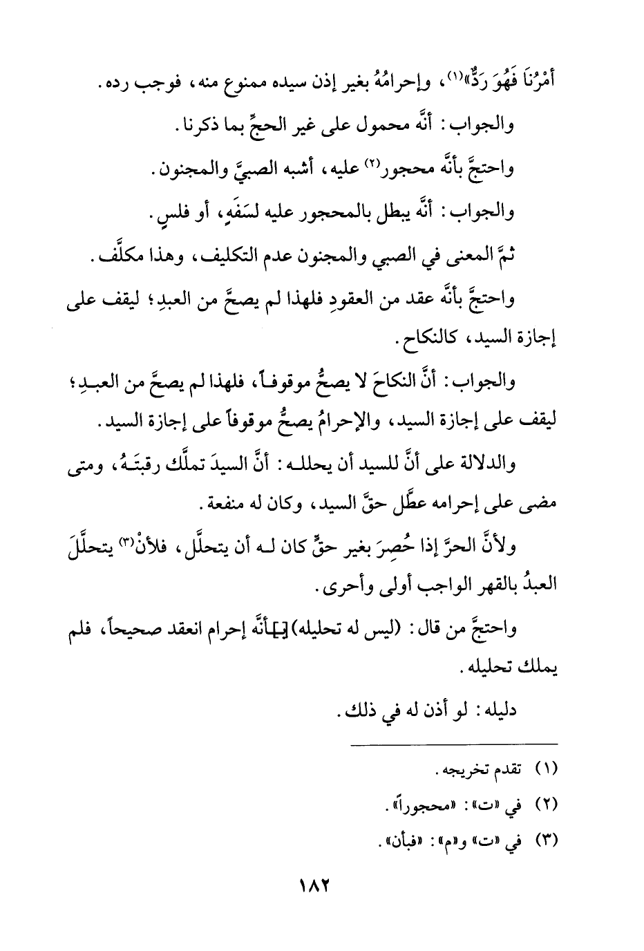 أمرنا فهو رد"، وإحرامه بغير إذن سيده ممنوع منه، فوجب رده.