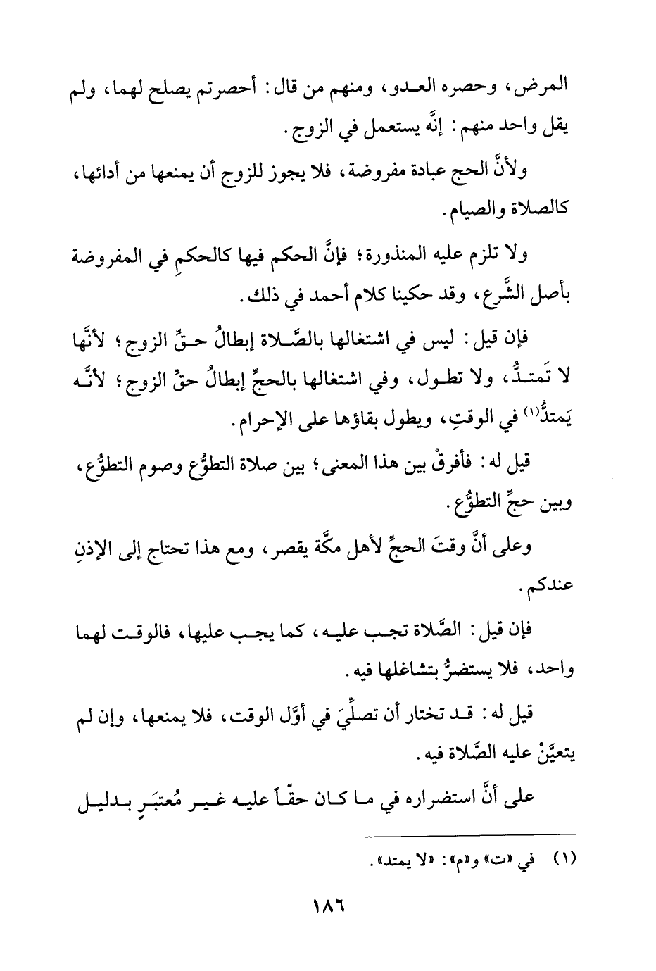 فإن قيل: ليس في اشتغالها بالصلاة إبطال حق الزوج؛ لأنها لا تمتد، ولا تطول، وفي اشتغالها بالحج إبطال حق الزوج؛ لأنه يمتد في الوقت، ويطول بقاؤها على الإحرام.