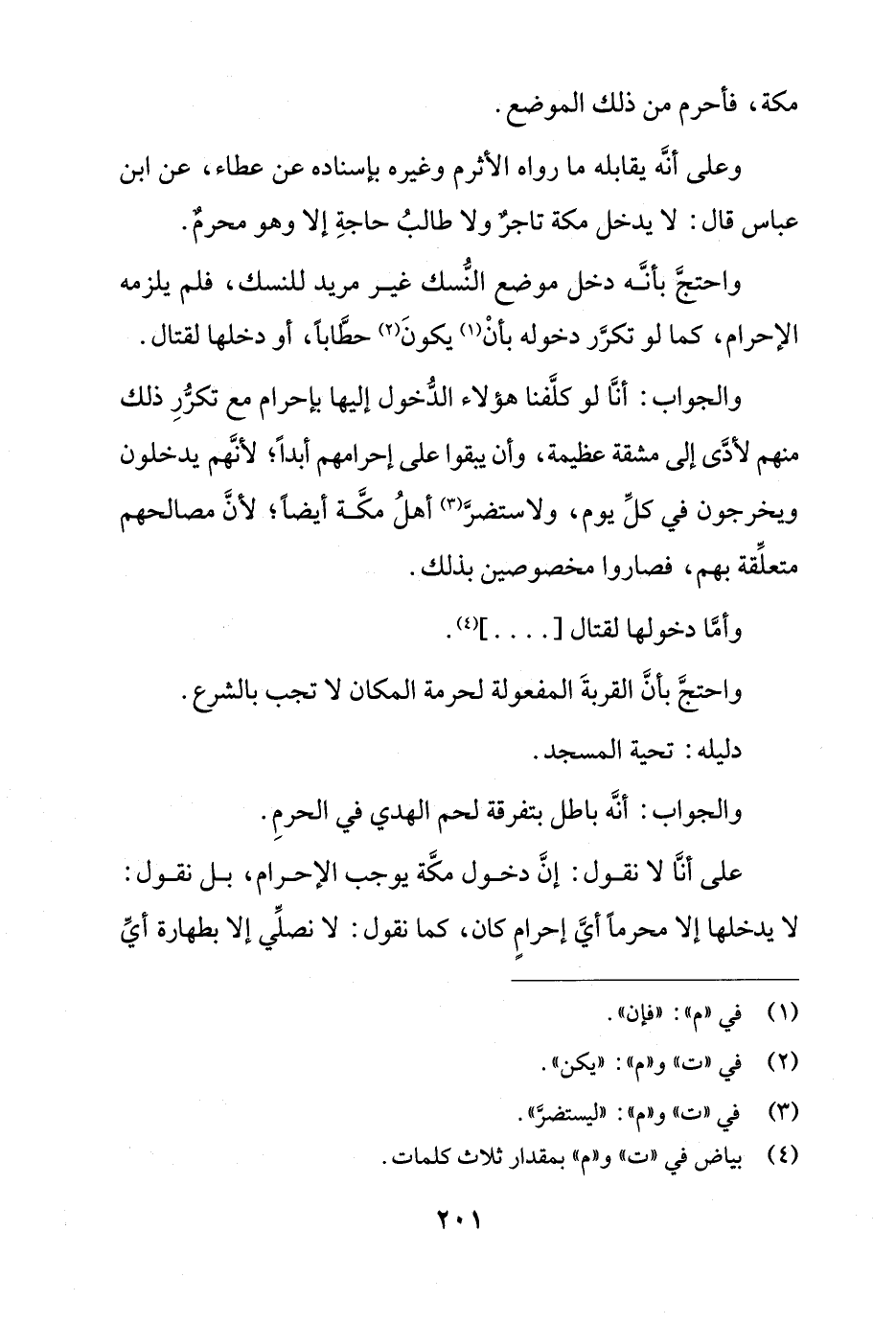 والجواب: أنا لو كلفنا هؤلاء الدُّخول إليها بإحرام مع تكرر ذلك منهم لأدى إلى مشقة عظيمة، وأن يبقوا على إحرامهم أبداً؛ لأنهم يدخلون ويخرجون في كل يوم، ولاستضر أهل مكة أيضاً؛ لأن مصالحهم متعلقة بهم، فصاروا مخصوصين بذلك.
