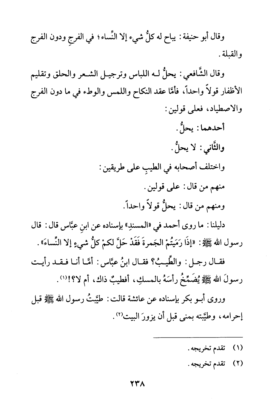 فقال رجل: والطيب؟ فقال ابن عباس: أما أنا فقد رأيت رسول الله صلى الله عليه وسلّم يُضمخ رأسه بالمسك، أفطيب ذاك، أم لا؟!.