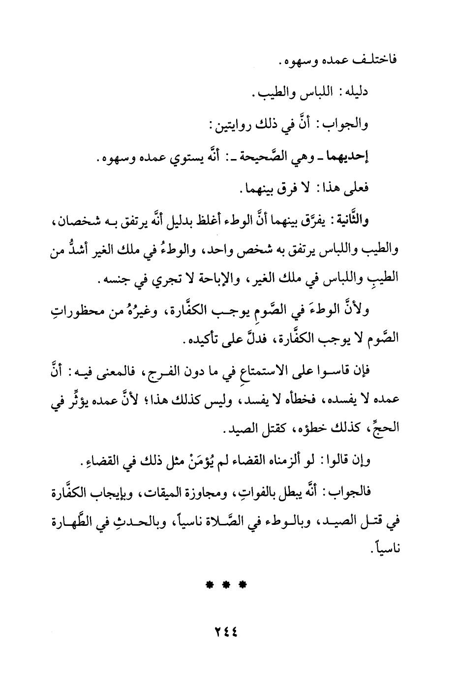 فإن قاسوا على الاستمتاع في ما دون الفرج، فالمعنى فيه: أن عمده لا يفسده، فخطأه لا يفسد، وليس كذلك هذا؛ لأن عمده يؤثر في الحج، كذلك خطؤه، كقتل الصيد.