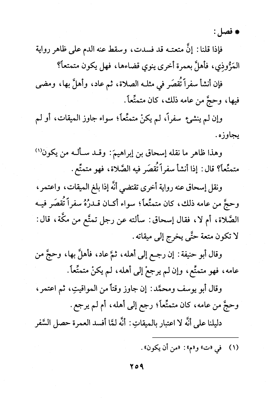وهذا ظاهر ما نقله إسحاق بن إبراهيم: وقد سأله من يكون متمتعاً؟ قال: إذا أنشأ سفراً تقصر فيه الصلاة، فهو متمتع.