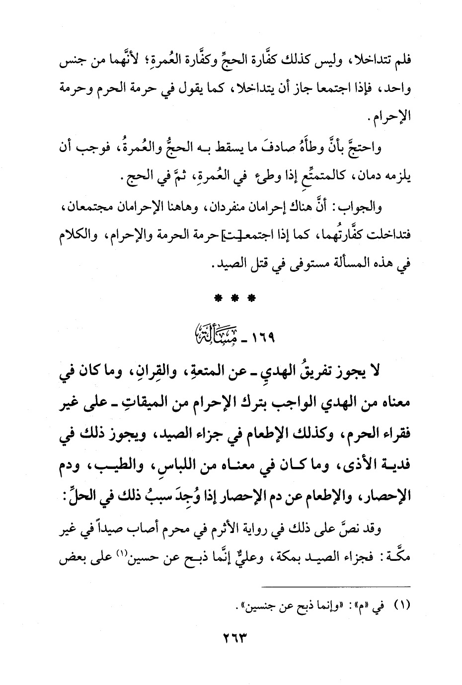 والجواب: أن هناك إحرامان منفردان، وهاهنا الإحرامان مجتمعان، فتداخلت كفارتهما، كما إذا اجتمعت حرمة الحرم والإحرام، والكلام في هذه المسألة مستوفى في قتل الصيد.