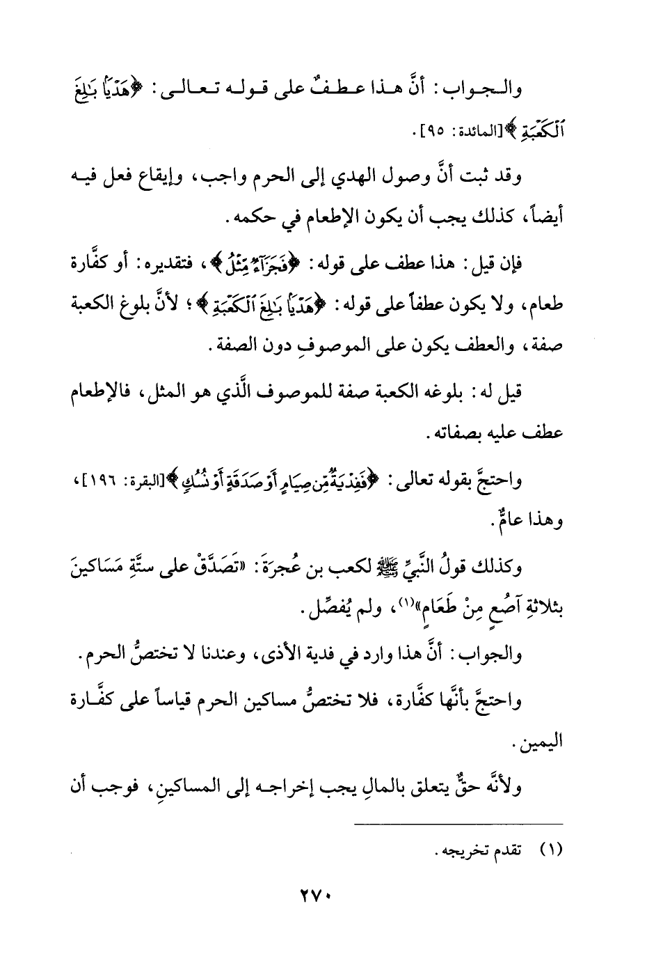 واحتج بأنها كفارة، فلا تختص مساكين الحرم قياساً على كفارة اليمين.