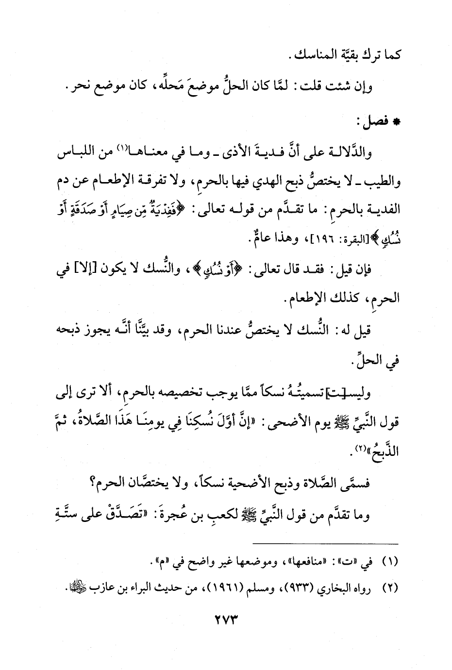 وليست تسميته نسكاً مما يوجب تخصيصه بالحرم، ألا ترى إلى قول النبي صلى الله عليه وسلّم يوم الأضحى: "إن أول نُسكنا في يومنا هذا الصلاة، ثم الذبح".