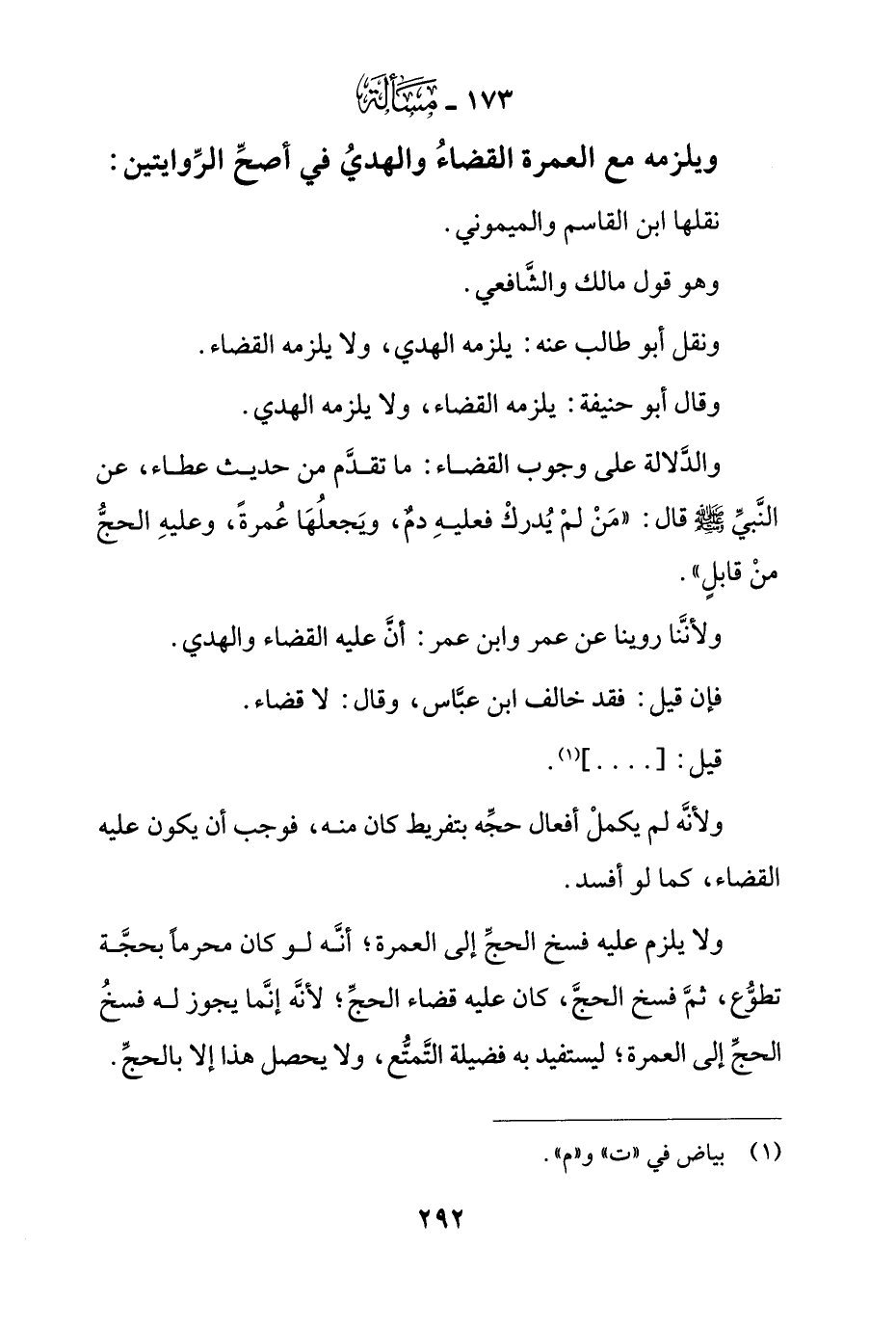 ويلزمه مع العمرة القضاء والهدي في أصح الروايتين: